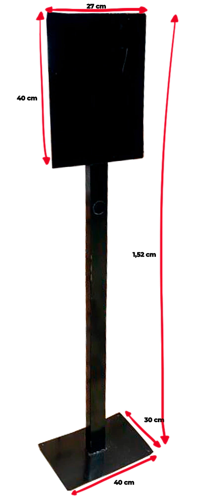Suporte solo em forma de pedestal fabricado em ferro fundido para Estação de Recarga para carros elétricos. Ideal para estacionamentos, autocenters, oficinas mecânicas e garagens.